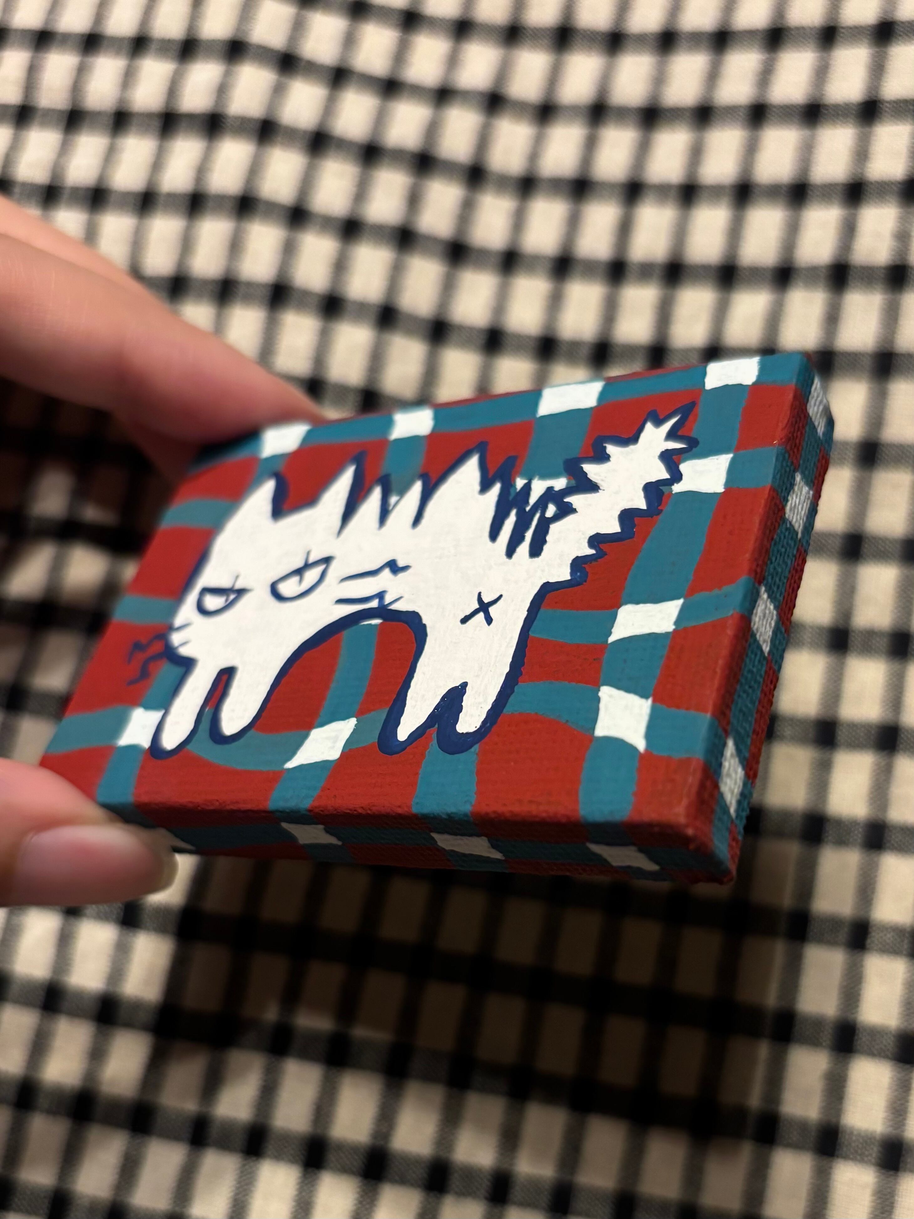 size 5cm × 7.5cm : アクリル絵具 不機嫌でもかわいいね、君は。 手のひらサイズのかわいいイラスト。